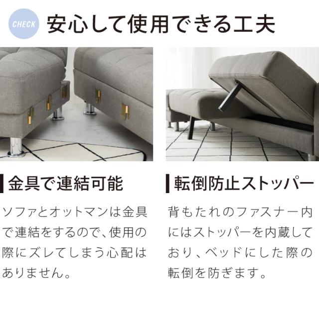ソファーベッド リクライニング ソファ 3人掛け 収納付き オットマン付き ソファベッド 三人掛け ベンチ 収納スツール付き(代引不可)【送料無料】