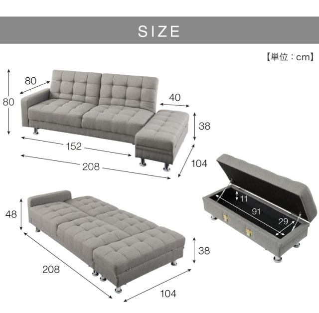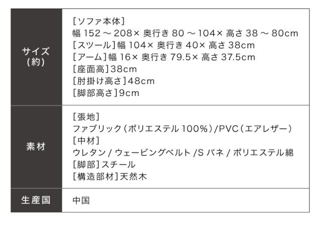 [ソファ本体]約幅152〜208×奥行き80〜104×高さ38〜80cm