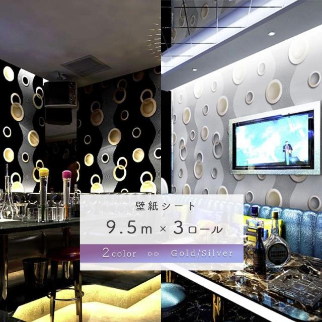 【在庫限り】壁紙 輪っか 3本セット ゴールドorシルバー 53cm×950cm DIY のりなし かわいい おしゃれ クロス 補修 ラグジュアリー 北欧 賃貸壁紙 背景 プレゼント 贈物 厚手 シンプル ベッドルーム リビング お洒落 防音