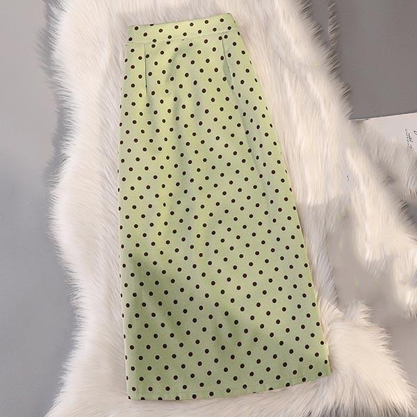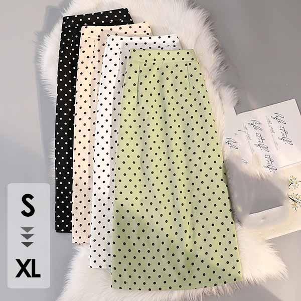 スカート ひざ下丈 レディース 春 夏 ドット柄 水玉 ミモレ丈 バックスリット タイトスカート ブラック グリーン ホワイト ベージュ きれいめ お出かけ デート デイリー 大人 可愛い 女子 シフォン シンプル 落ち感 ひらひら リゾート ビーチ S M L XL dd094x1x1c9