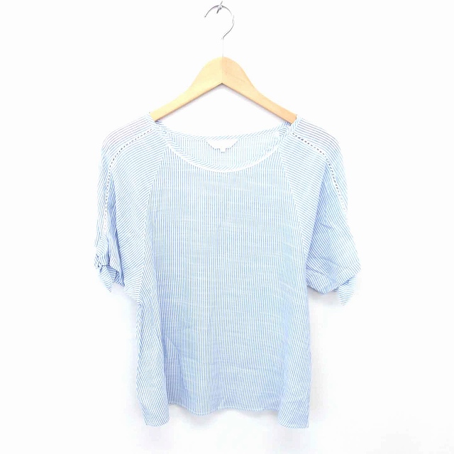 【中古】グローブ grove カットソー ブラウス ストライプ レース プルオーバー 半袖 M ブルー ホワイト 青 白 /TT27