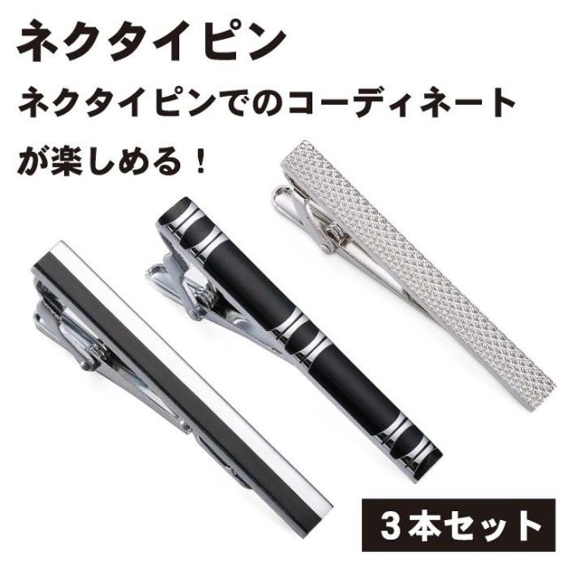 ネクタイやスーツのように、ネクタイピンでのコーディネートが楽しめる3本セットです。
