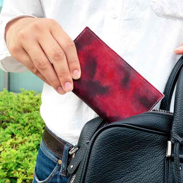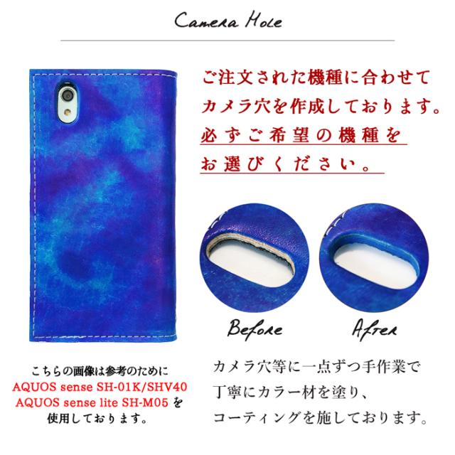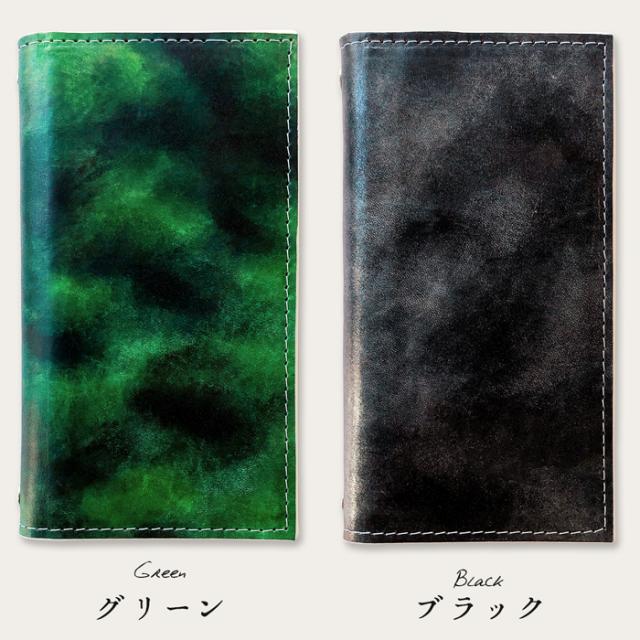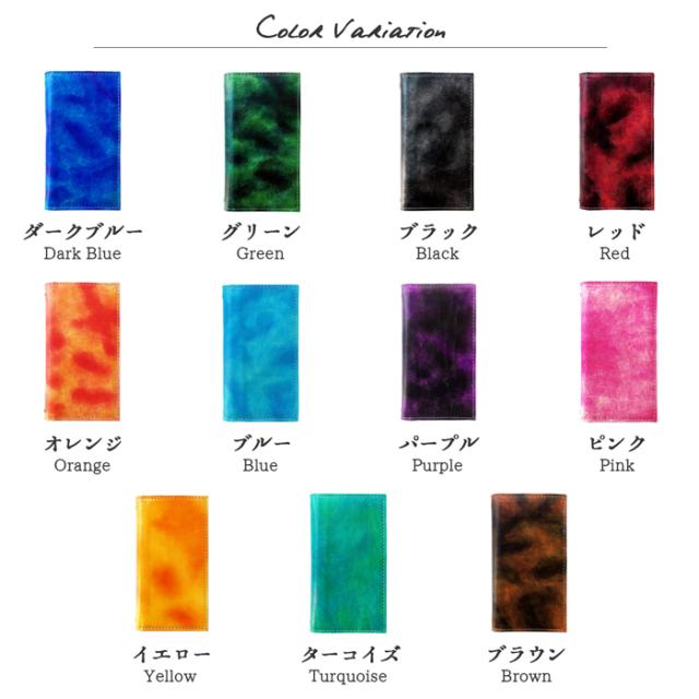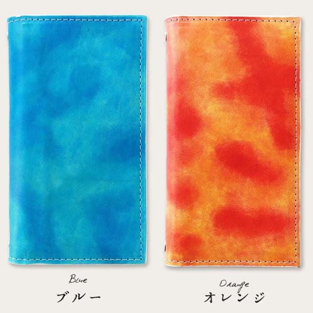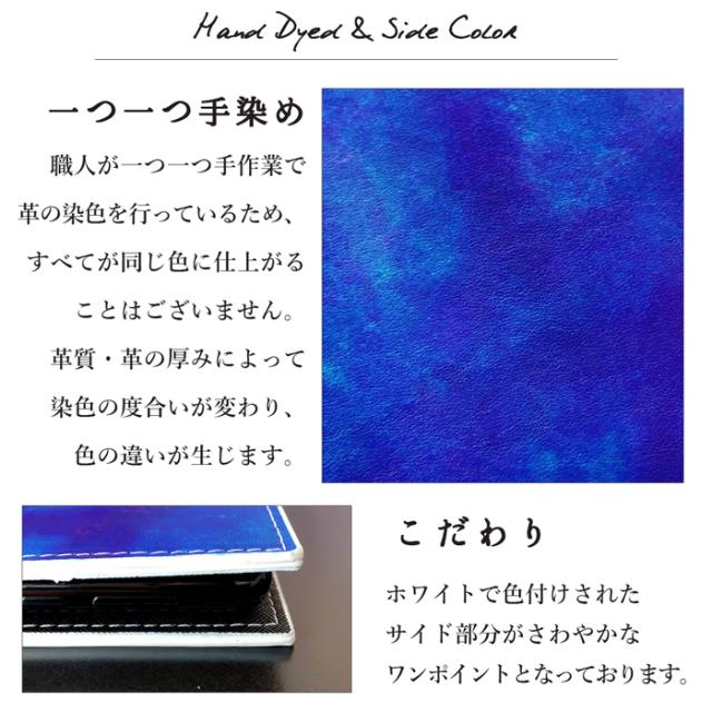一つ一つ手作業で革の染色を行っています。革質によって染色の度合いが変わるので、世界に一つだけの色、手帳型ケースが生まれます。