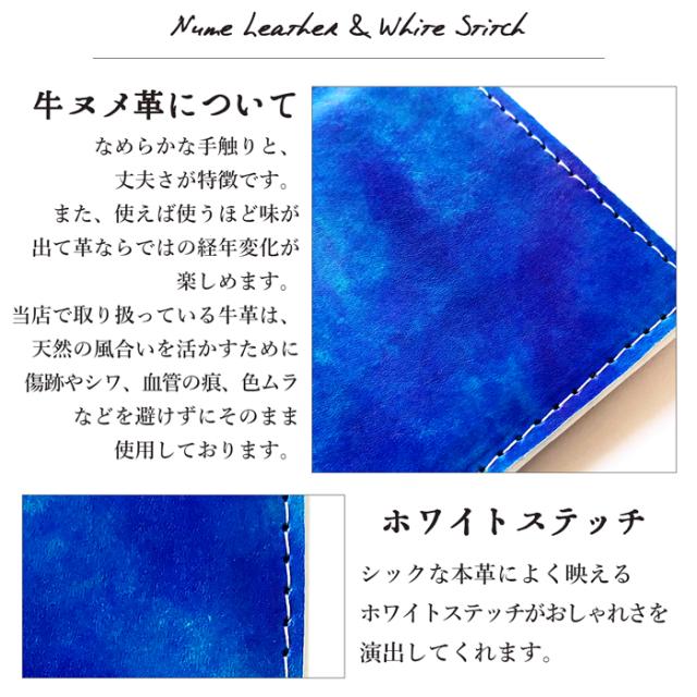 なめらかな手触りと丈夫さが特徴の牛ヌメ革を使用した本格手帳型ケースです。