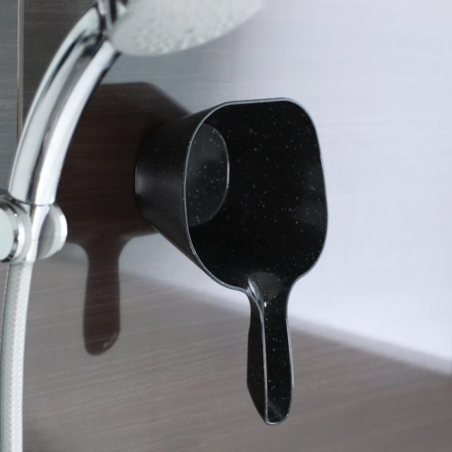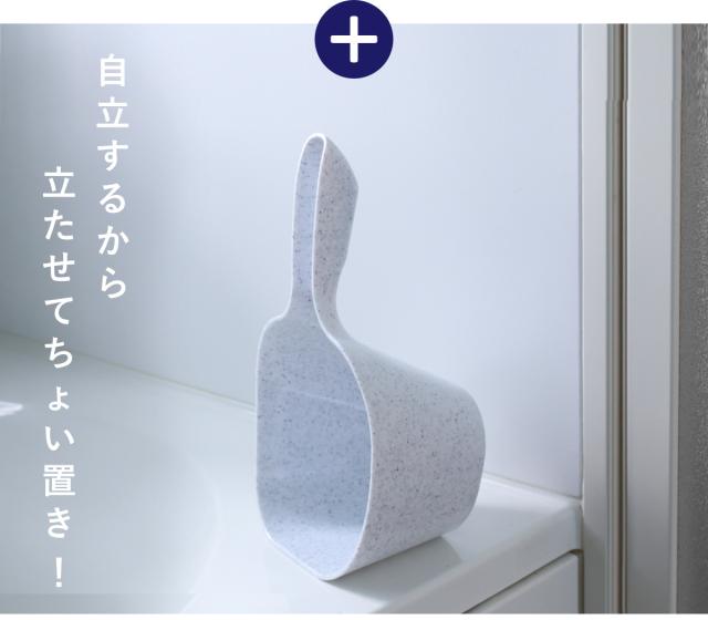 側面の一部分がフラットになっているため、ちょっと置きたいときにスペースを取らずちょい置きできます。シャワー中の水が溜まらず衛生的です。