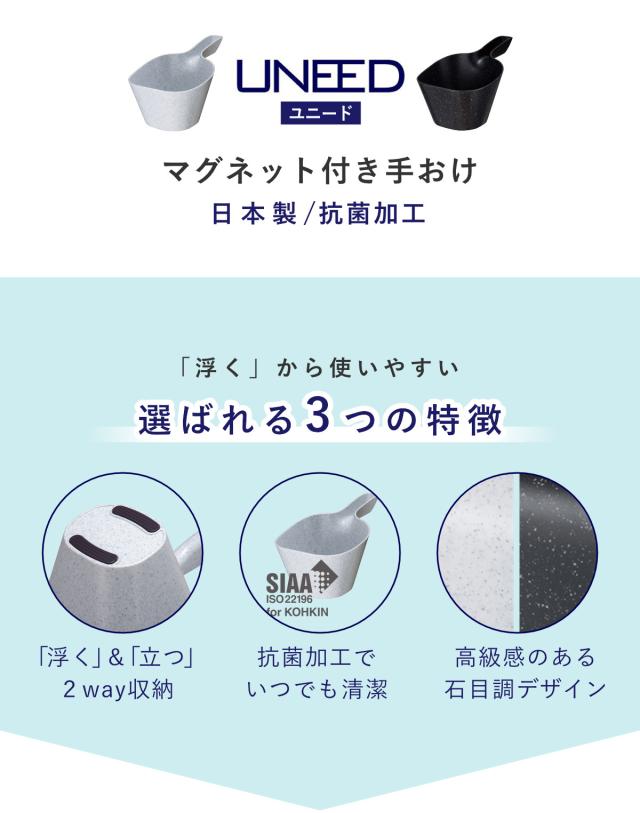 手桶 ユニード マグネット付き 日本製 ( 手おけ 風呂桶 マグネット 壁面 磁石 入浴 マグネット収納 防カビ Ag SIAA抗菌 風呂おけ バスグッズ ブラック ホワイト テラゾー柄 おしゃれ )