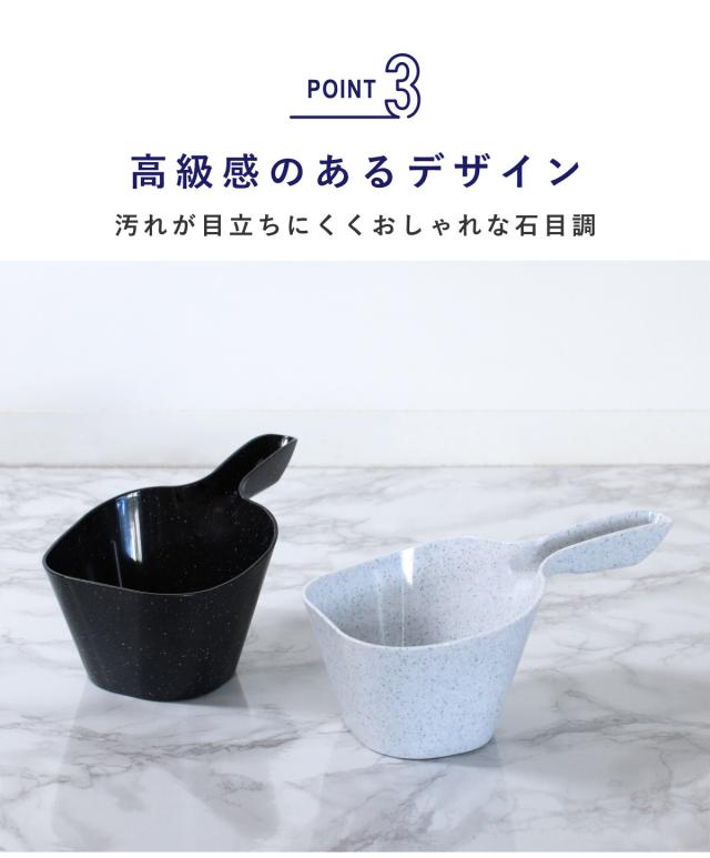 スタイリッシュで清潔感のある石目調モノトーン。外側はセミマットな質感で高級感を。内側はツルっとした質感でお手入れしやすく。