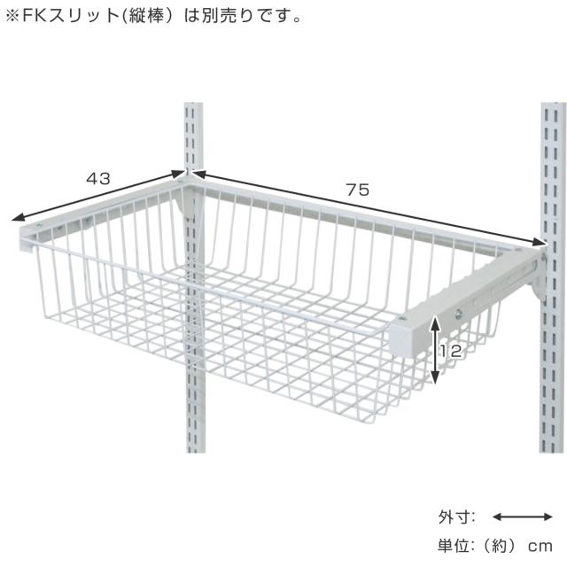 壁面収納 フィットラック スライドバスケットセット 幅75cm ( 幅75×奥行43×高さ12cm バスケット パーツ オプション 部品 DIY 収納 小物収納 可動棚 オープンラック 収納ラック 有効活用 ホワイト 吊り下げ )