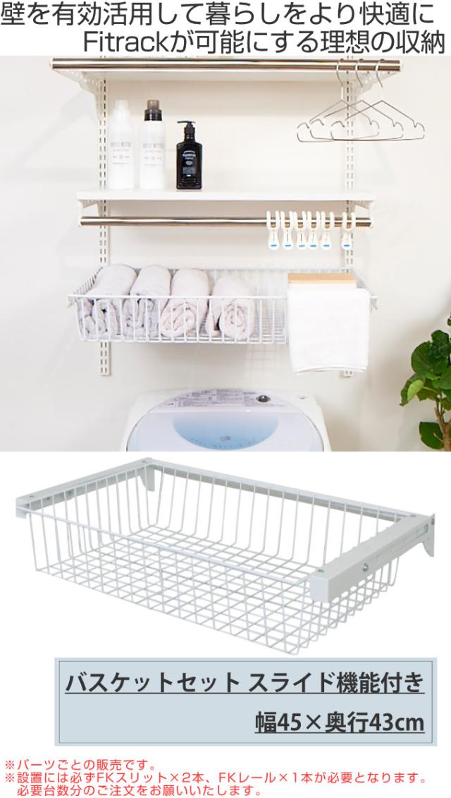 壁面収納 フィットラック スライドバスケットセット 幅45cm ( 幅45×奥行43×高さ12cm バスケット パーツ オプション 部品 DIY 収納 小物収納 可動棚 オープンラック 収納ラック 有効活用 ホワイト 吊り下げ )