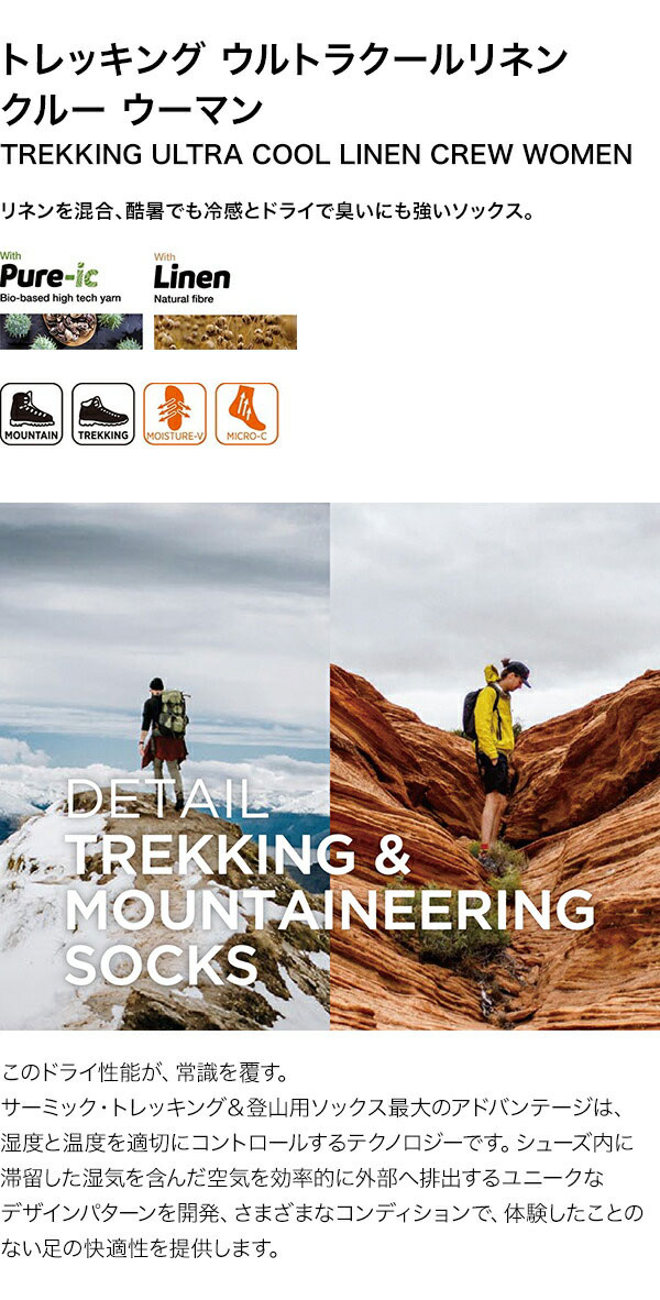 【メール便対応】THERM-IC サーミック トレッキング ウルトラクールリネン クルー ウーマン グレー/パープル T25-5250-002