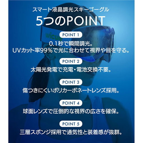 紫外線カット率99%の【スマート液晶調光スキーゴーグル】はあなたの目を紫外線からしっかり守ります。