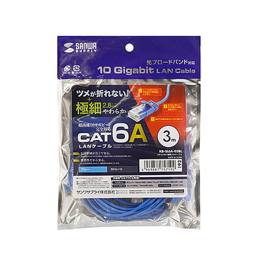 【5個セット】 サンワサプライ カテゴリ6A極細LANケーブル ブルー KB-SL6A-03BLX5(代引不可)【送料無料】