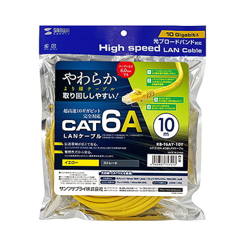【5個セット】 サンワサプライ カテゴリ6Aより線LANケーブル 10m イエロー KB-T6AY-10YX5(代引不可)【送料無料】
