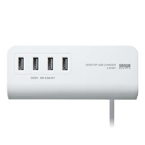 【5個セット】 サンワサプライ クランプ式USB充電器 USB4ポート・ホワイト ACA-IP50WX5(代引不可)【送料無料】