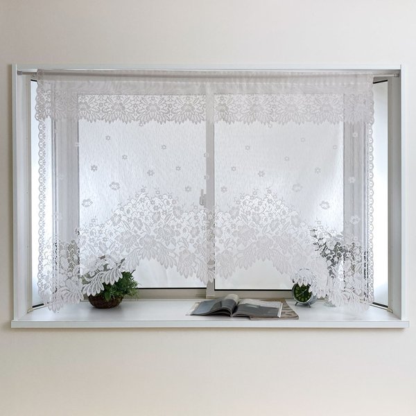 出窓用 レースカーテン 幅145×丈105cm フリル付き フック付き 日本製 カフェカーテン リビング ダイニング ベッドルーム 店舗
