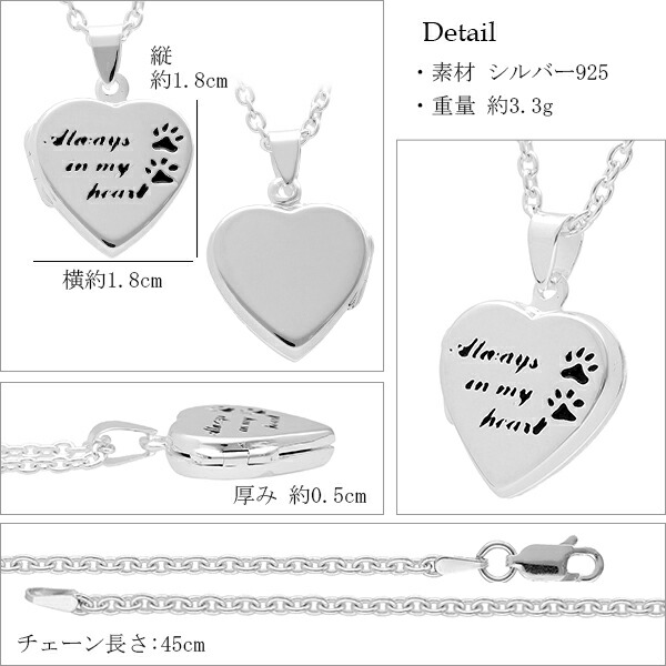 動物 あしあと ハート シルバー ロケットネックレス チェーン付き 写真入れ ロケットペンダント ロケット ネックレス 刻印 刻印可