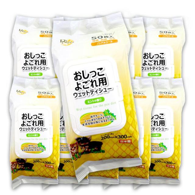 おしっこよごれ用ウェットティシュー 50枚入り 10個 除菌・抗菌・消臭 ペット用 ノンアルコール フタ付き ミントの香り