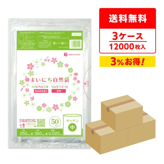 保存袋 食品用ポリ袋 中サイズ 透明 25x35cm 0.020mm厚 50枚x80冊x3箱 LN-12-3 ゴミ袋 ビニール袋 食品用 調理用 小分け袋 野菜 キッチン用品 台所 サンキョウプラテック 送料無料