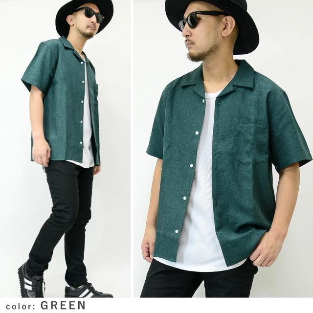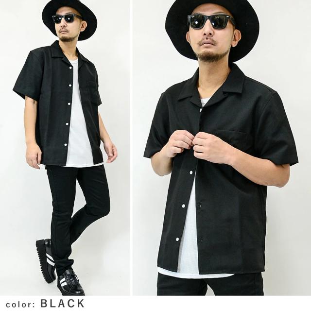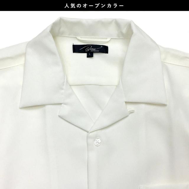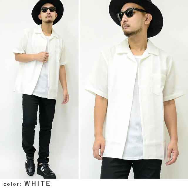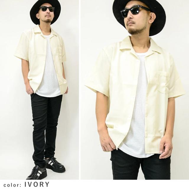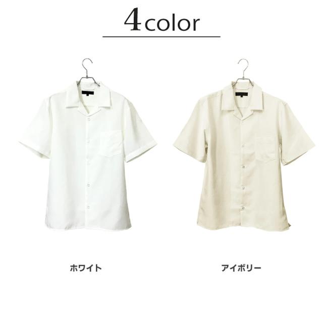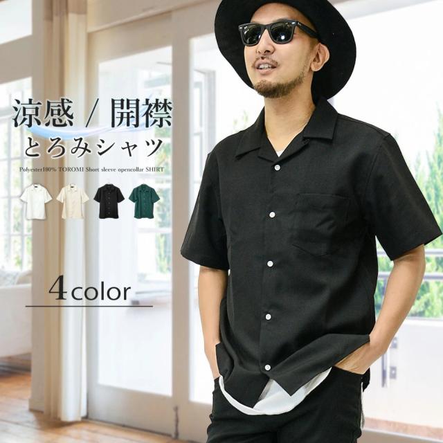 【閉店セール】ポリトロ 半袖オープンカラーシャツ 2103l122 メンズシャツ 開襟シャツ 半袖シャツ とろみ素材 ポリトロ 無地 ホワイト アイボリー ブラック グリーン 黒シャツ 白シャツ M〜Lサイズ カジュアル 韓国ファッション シャツ メンズ メール便対応