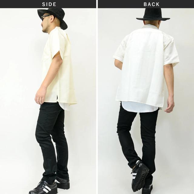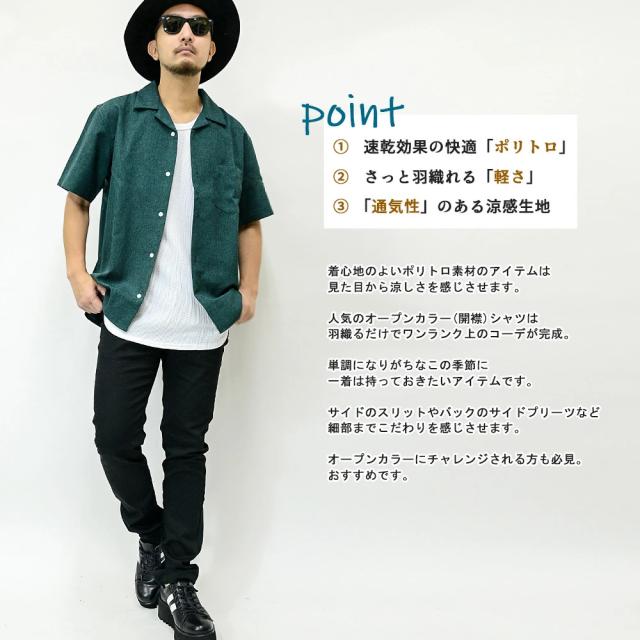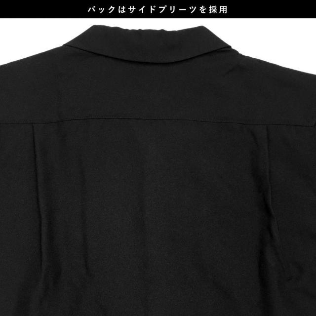 オープンカラー/開襟/無地/サイドスリット/サイドプリーツ/ポリトロ素材/トロピカル素材/