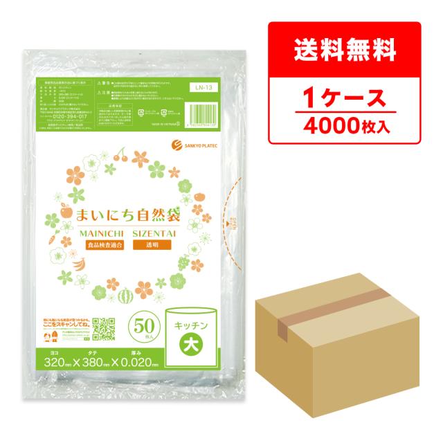 保存袋 食品用ポリ袋 大サイズ 透明 32x38cm 0.020mm厚 50枚x80冊 送料無料 ゴミ袋 ビニール袋 食品用 調理用 小分け袋 野菜 キッチン用品 台所 サンキョウプラテック