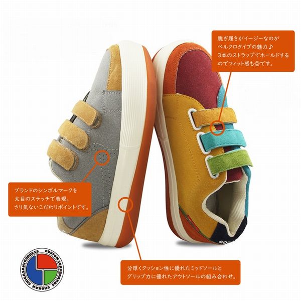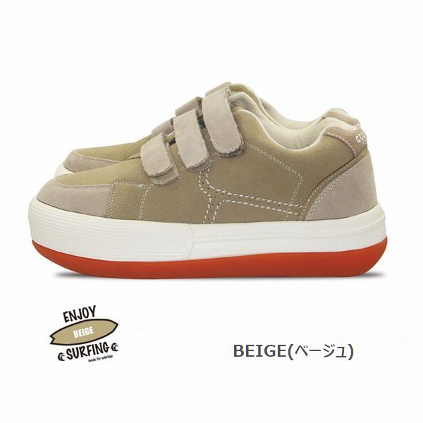 | 日本を代表するサーフブランド湘南・茅ヶ崎【GODDESS(ゴッデス)】のフットウェアライン 分厚くクッション性に優れたミッドソールとグリップ力に優れたアウトソールの組み合わせ ステッチには1トーン明るい縫製で全体的に縫い目を強調 丸みのあるボディが足元にボリュームとインパクトを与えてくれます 使用・素材について ・ベルトループにPVCゴムを使うことでベルトの劣化を軽減、ベルトがへたりにくく綺麗な外観で長く履けます ・かかと周りにたっぷりの中綿を入れているので足首をしっかりホールドし履き心地もアップ ・裏地には吸水性・速乾性に優れたメッシュ素材を使用 ・ベルクロテープでサイズ調整しやすく、着脱楽チン enbridgeインソール搭載 厚底スニーカー用に開発されたアーチサポートインソール搭載 ・踵から土踏まずまで硬質のアーチ素材を使用し、三点アーチをより的確にサポート ・踵部分の高反発EVA素材が歩行時の衝撃を吸収 ・表面には肌触りの良いメッシュ素材を使用。本体部分は通気口のあるEVA素材を使用しているため通気性に優れています |