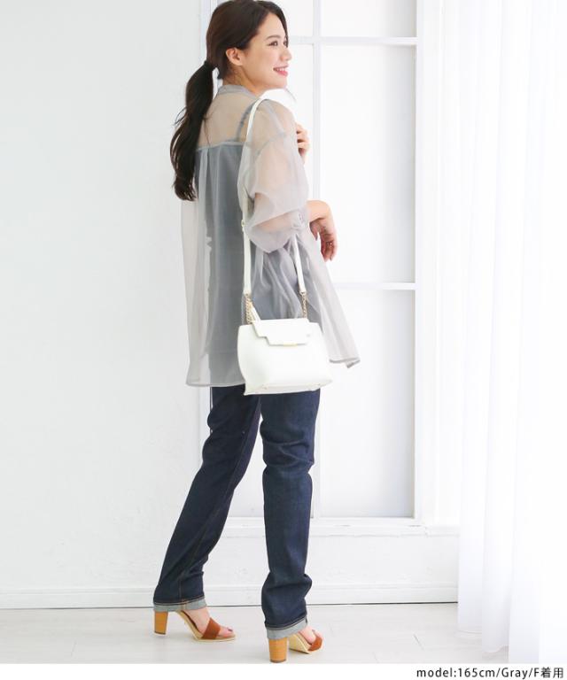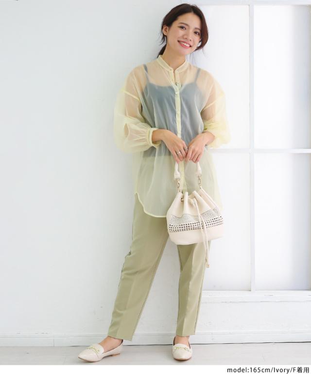 | オーバーサイズでラフなシルエットながらも品が出るオーガンジーシャツ。高級感のある華やかな素材でメンズライクな印象を与えるオーバーシャツも女性らしく着こなしていただけます。透け感が強いためインナーに柄物やレース素材を合わせてコーディネートを楽しめます。 |