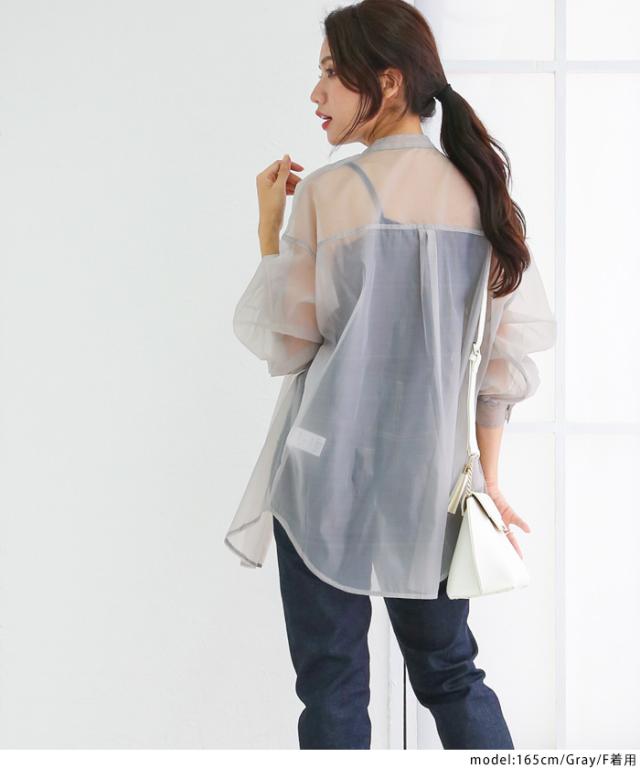 オーバーサイズでラフなシルエットながらも品が出るオーガンジーシャツ。高級感のある華やかな素材でメンズライクな印象を与えるオーバーシャツも女性らしく着こなしていただけます。透け感が強いためインナーに柄物やレース素材を合わせてコーディネートを楽しめます。