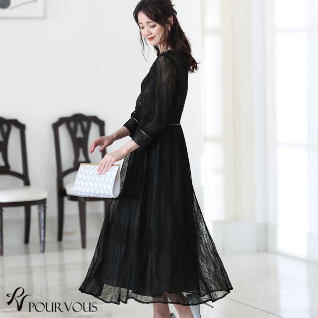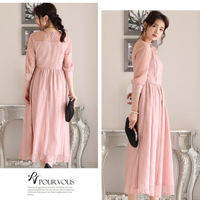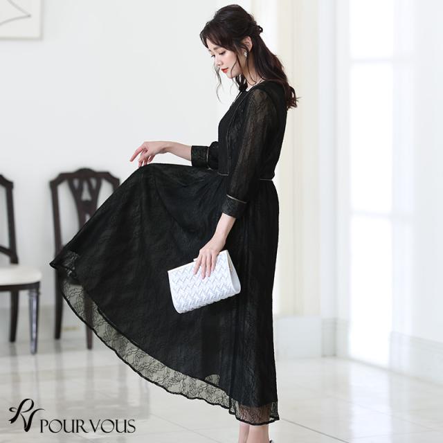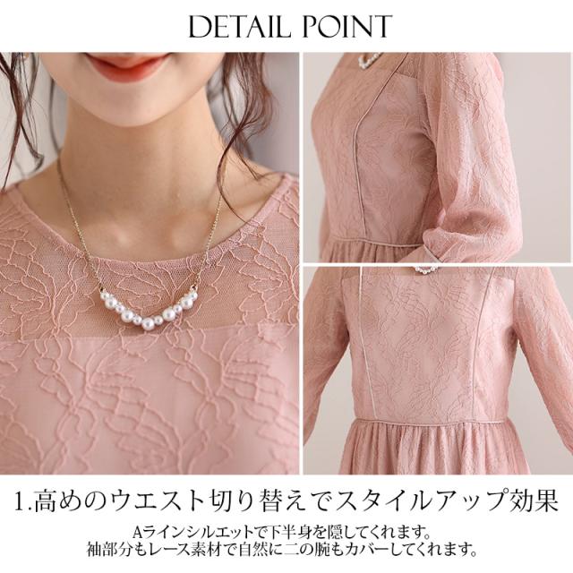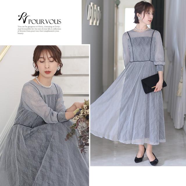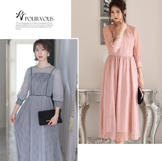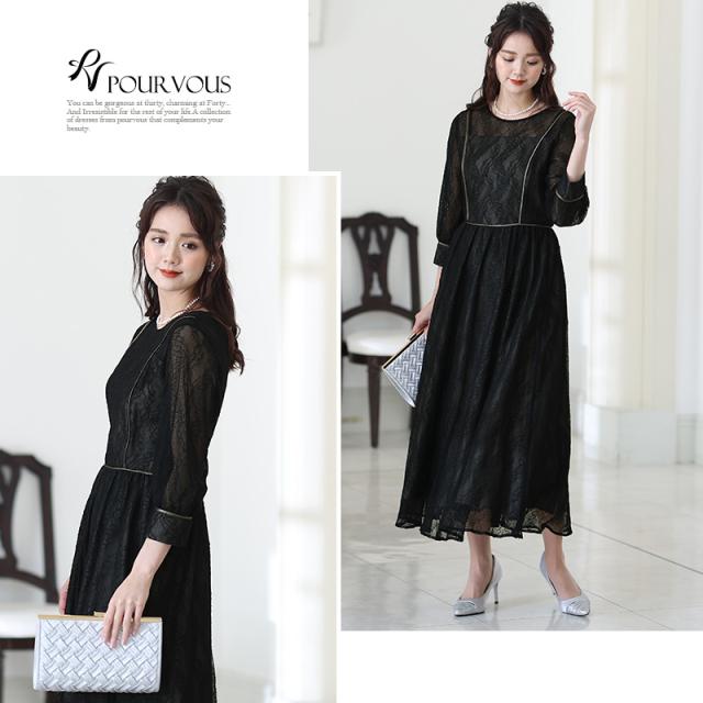 リーフ柄レースパイピングワンピース【214221616】20代・30代・40代・54代長袖・膝丈・セットアップ・スカート・体型カバー・ジャケット・テーラード・スーツ・大きいサイズなど・即日発送・送料無料結婚式・婚活・披露宴・顔合わせ・二次会・同窓会・お呼ばれ・食事会・謝恩会・親族・七五三・お宮参り・冠婚葬祭・弔事・女子会・デート・入学式・卒業式・入園式・卒園式・ママ・マタニティー・セレモニー・セレブ・パーティー