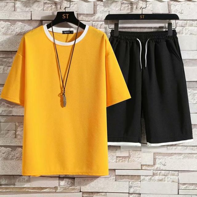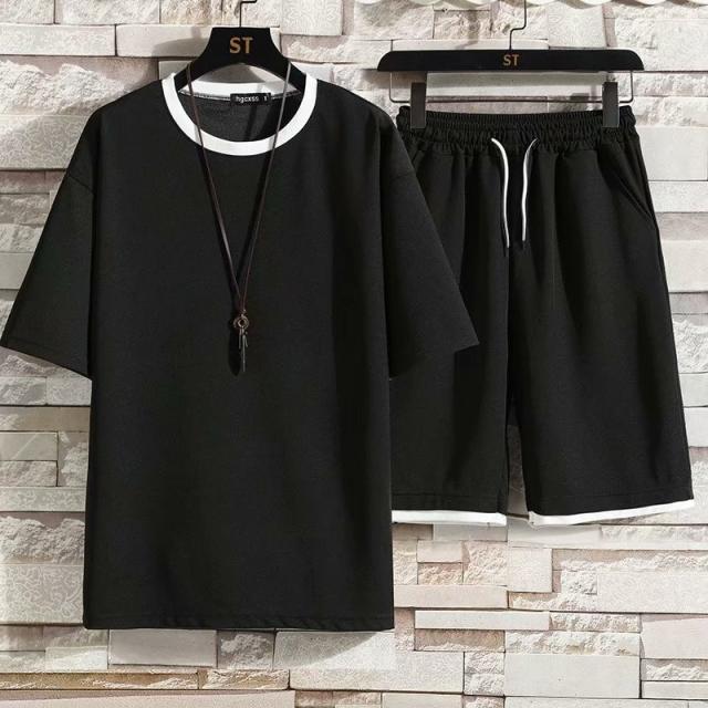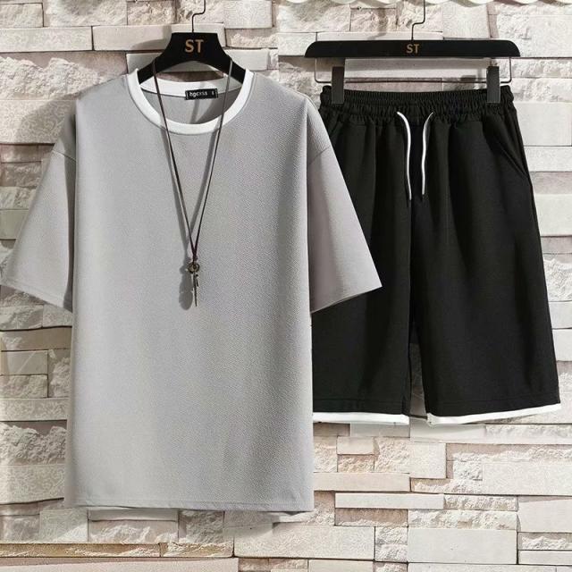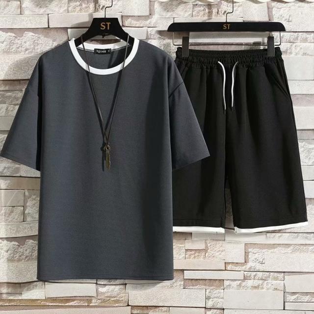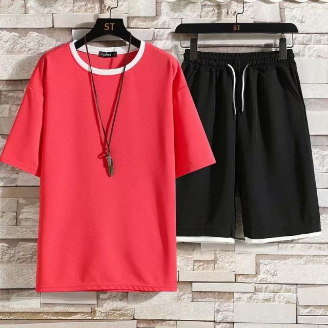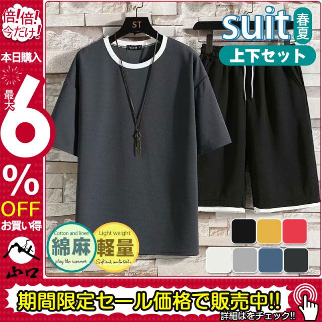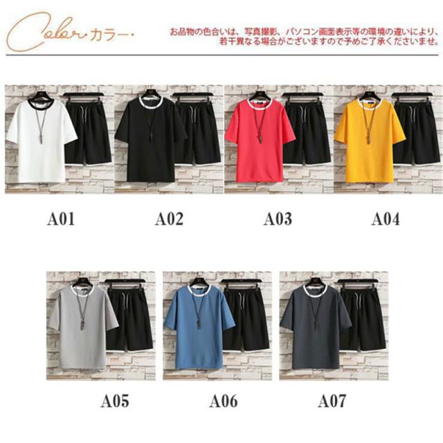 メンズ 半袖上下セット セットアップ カジュアル 夏服 ボトムス 半ズボン 短パン クールネック ジャージ 軽量 柔らか ひんやり