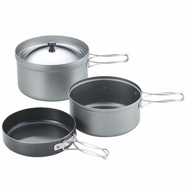 熱伝導に優れた1.2mm厚のアルミクッカー。1合炊きの炊飯目盛も付いて、使い勝手抜群。(アルマイト加工)