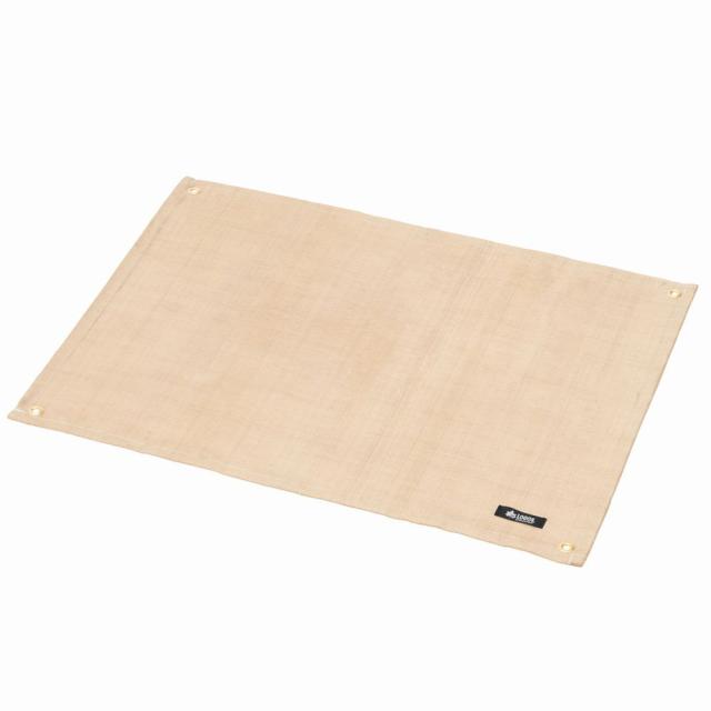 火床の火の粉が直に芝生やウッドデッキに落ちるのを防ぐ耐火シート。耐熱温度約500℃で熱に強く、ワイドサイズでBBQグリルの下に敷くことも可能。卓上グリルの場合は2つ折りにしてテーブルに敷くことで、熱をやわらげ、焼けあとや焦げを付きにくくします。
