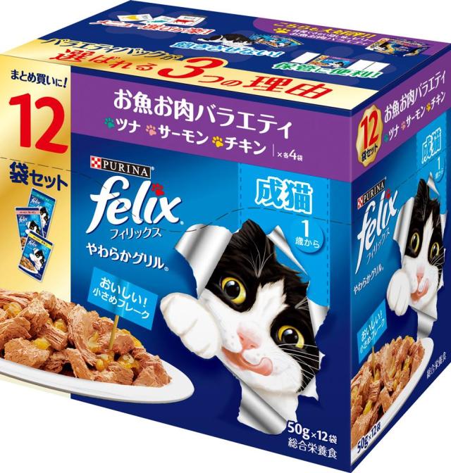ネスレ日本 フィリックスパウチ やわらかグリル 成猫 お魚お肉バラエティ 50g×12袋 返品種別B