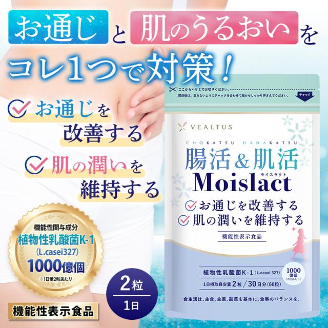 腸活&肌活 モイスラクト 乳酸菌 サプリ お通じを改善 肌の潤いを維持 機能性表示食品 サプリメント コラーゲン ハトムギ 難消化性デキストリン イヌリン オリゴ糖 30日分
