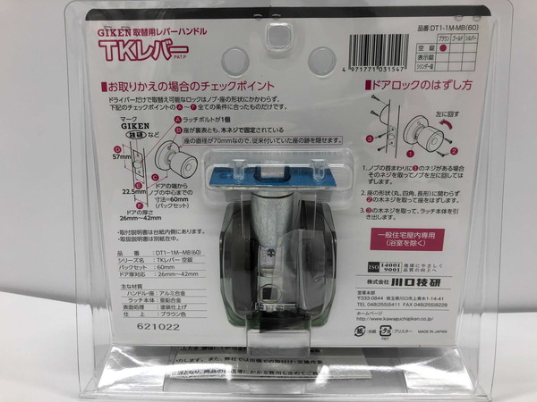 川口技研 取替 レバーハンドル ドアレバー TKレバー 空錠 DT1-1M-MB ブラウン GIKEN ドアノブ バックセット 60mm おしゃれ DIY【送料無料】