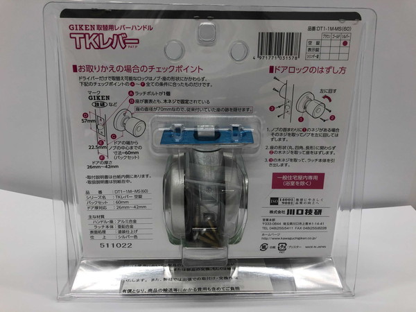 川口技研 取替 レバーハンドル ドアレバー TKレバー 空錠 DT1-1M-MS シルバー GIKEN ドアノブ バックセット 60mm おしゃれ DIY【送料無料】