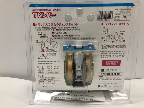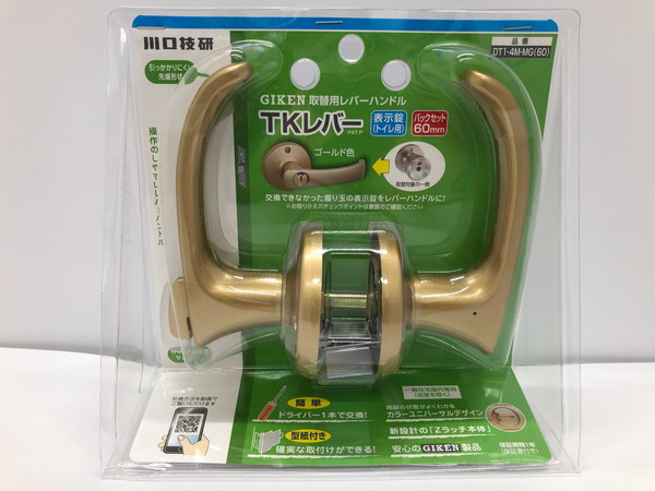 川口技研 取替 レバーハンドル ドアレバー TKレバー 表示錠 DT1-4M-MG ゴールド バックセット60mm 握り玉取換 簡単【送料無料】