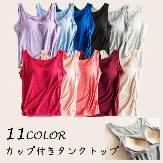 ブラトップ レディース タンクトップ カップ付き キャミソール インナー スポーツ ダンス 大きいサイズ 全11色 S-2XL