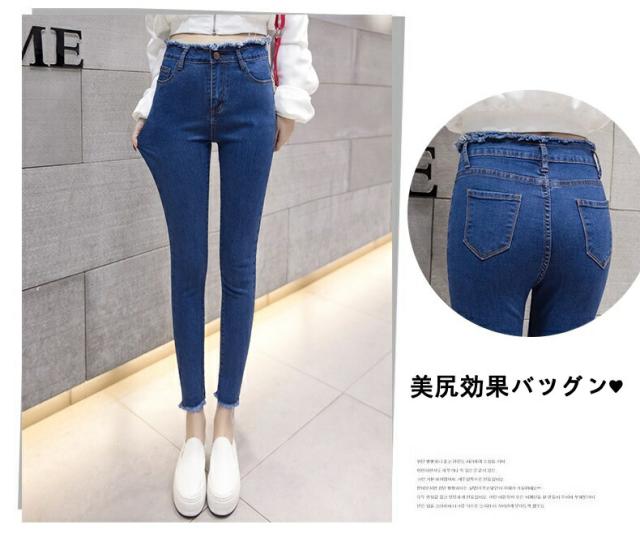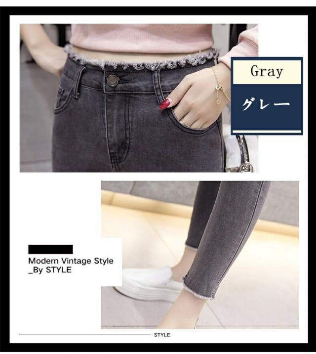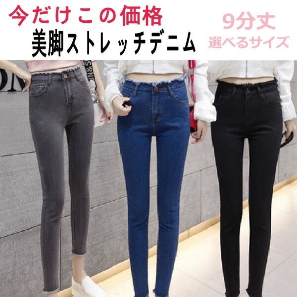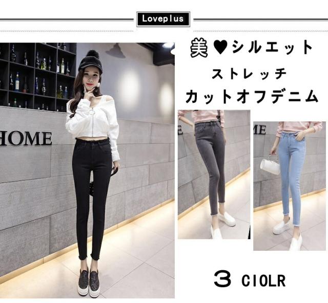 【9分丈美脚ストレッチデニム】カットオフ 切りっぱなし デニム レギンス