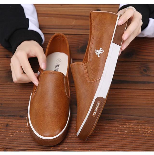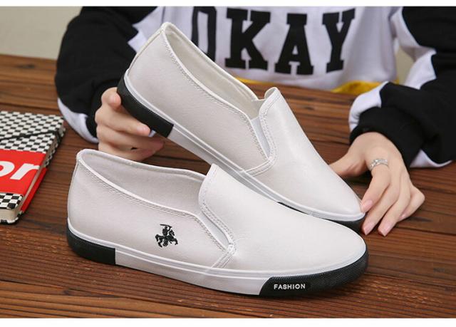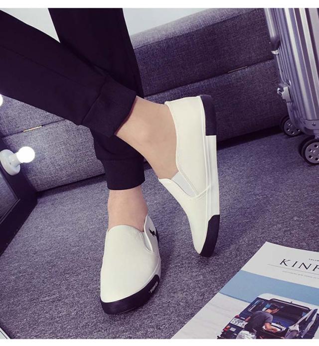 スリッポン スニーカー PU レザー風 メンズ レディース 靴 定番 ぺたんこ 無地 ベーシック