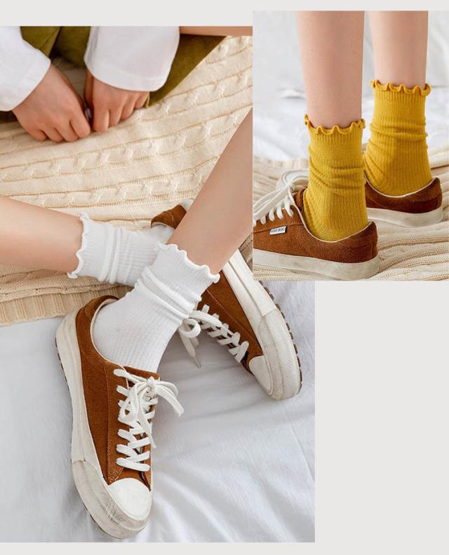 【靴下5足セット】ソックス レディース フリル付き ショートソックス カバーソックス 無地 かわいい シンプル フリーサイズ