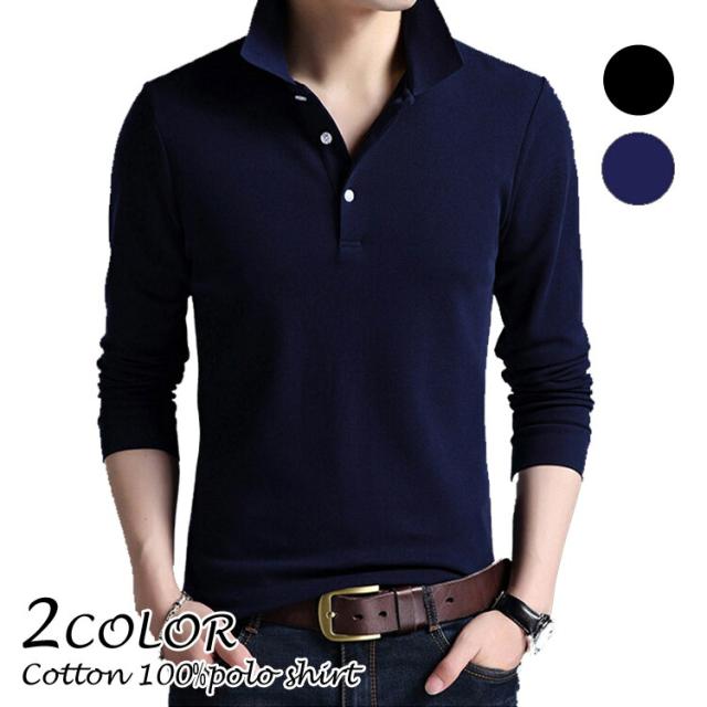 ポロシャツ メンズ 秋冬 長袖 鹿の子 綿100% スリムフィット 無地 ゴルフウェア 大きいサイズ 全2色 M-3XL