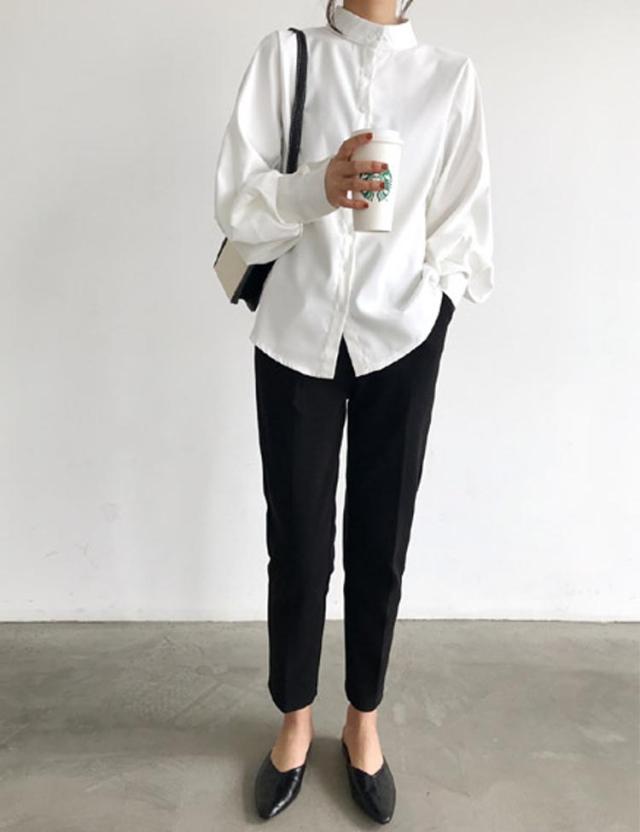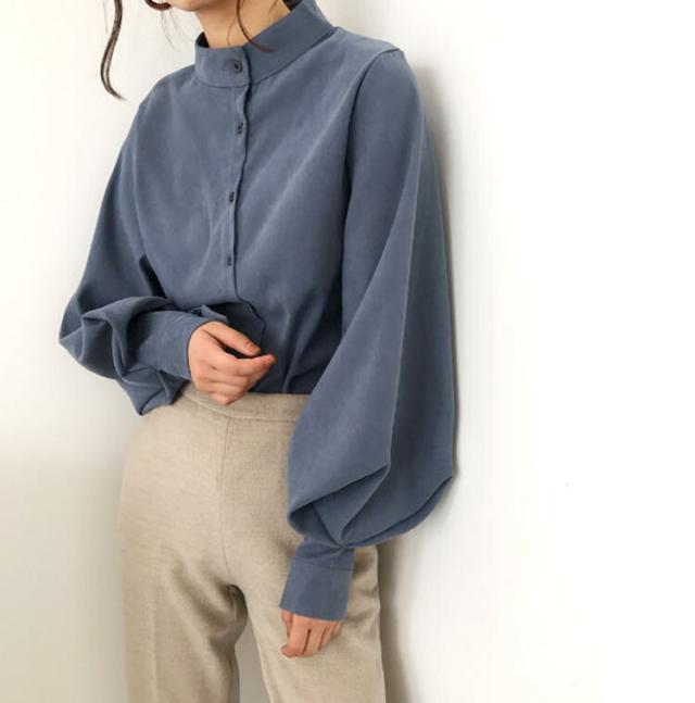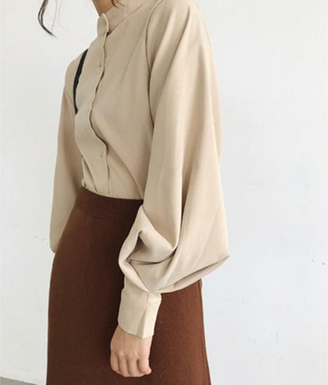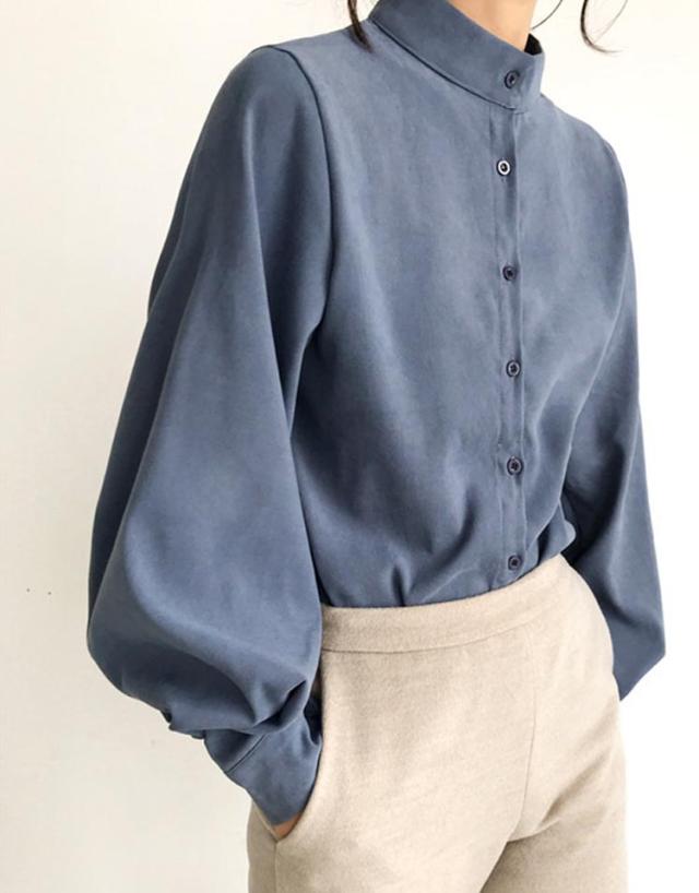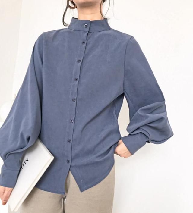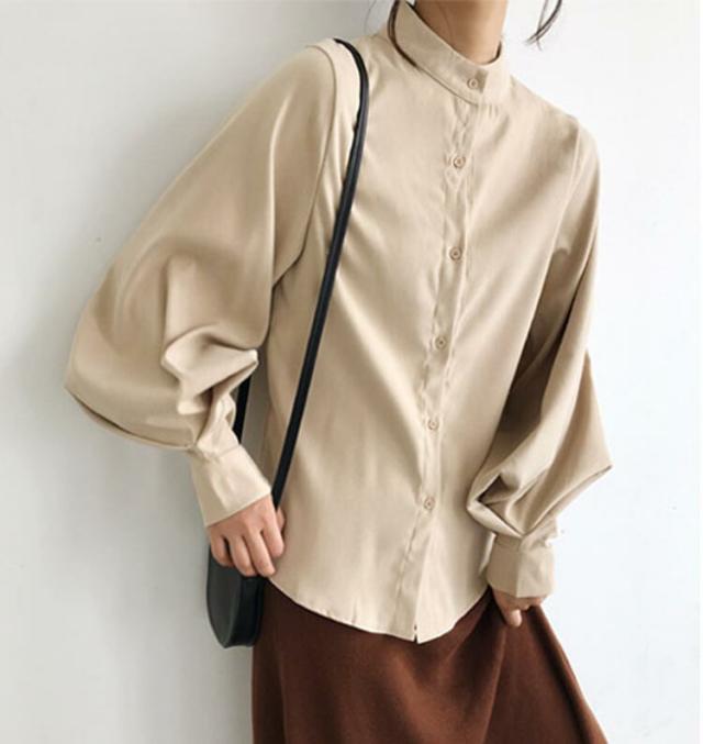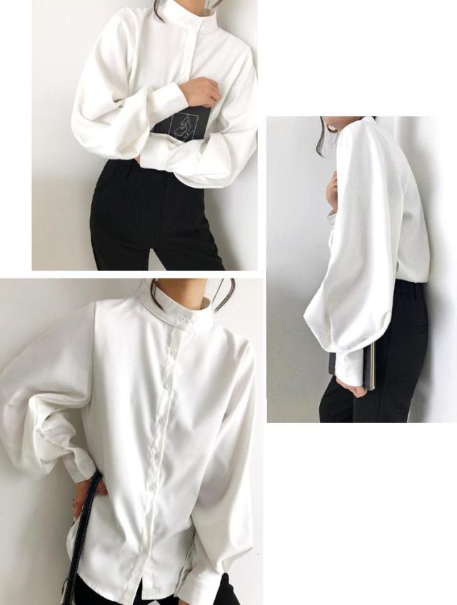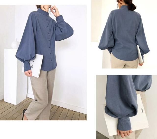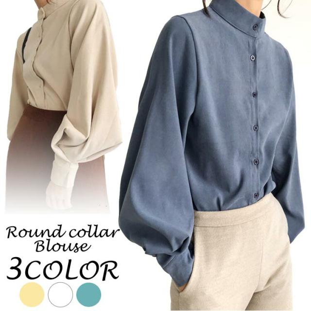 ブラウス レディース 春夏秋冬 長袖 オフィス フォーマル きれいめ ゆったり 丸襟 パフスリーブ 薄手 とろみ トップス カジュアル ビジネス 無地 大きいサイズ 全3色 S-XL