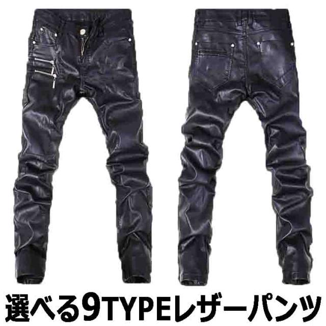 9TYPE レザーパンツ ライダースパンツ バイカーパンツ ボンテージ ロック ヴィジュアル系 ゴシック パン PUレザー バイクパンツ 合皮 ロングパンツ 革
