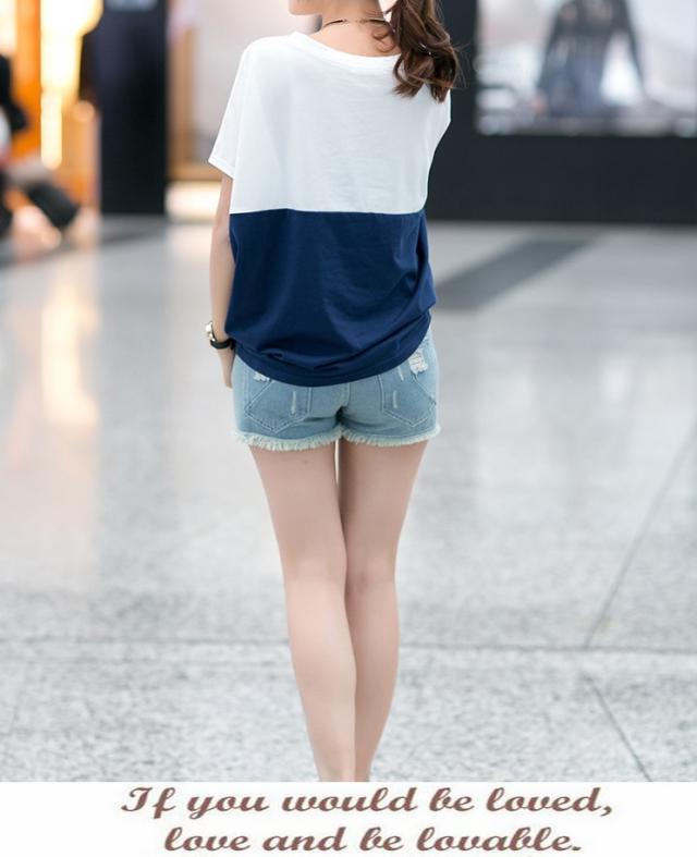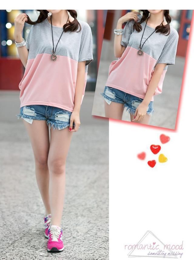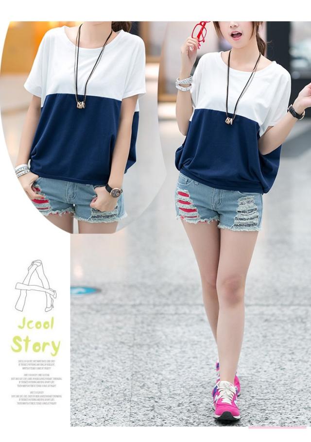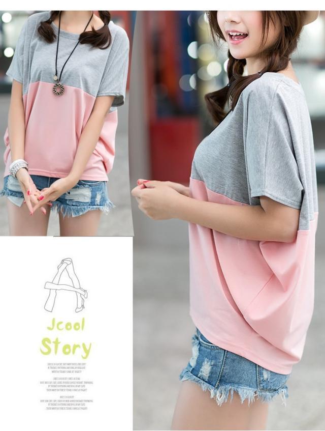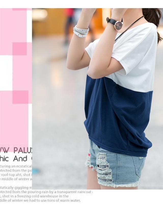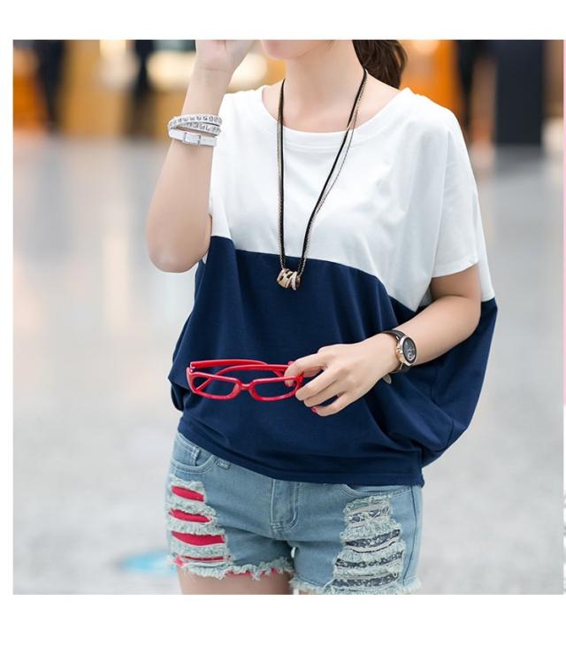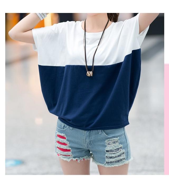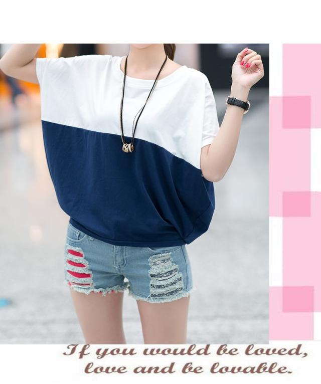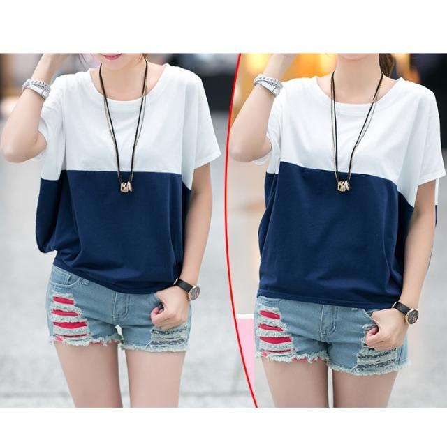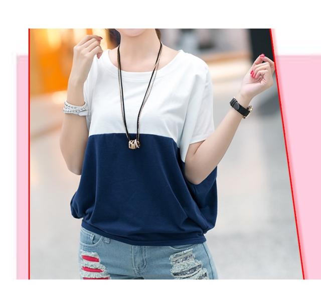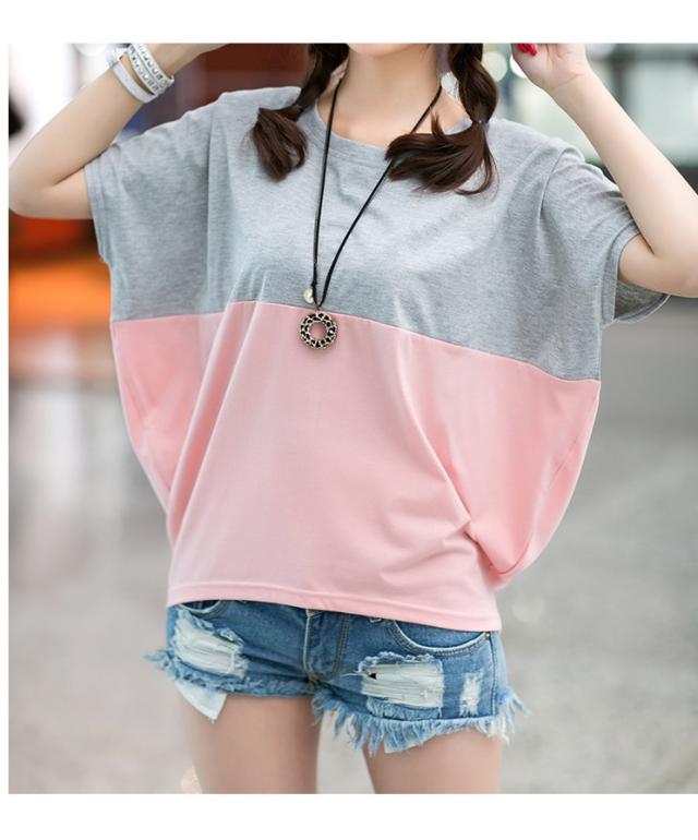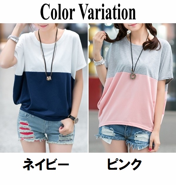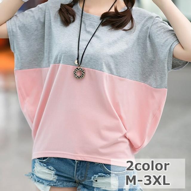 Tシャツ レディース 春夏秋冬 半袖 ドルマン袖 バイカラー クルーネック カジュアル おしゃれ ゆったり 大きいサイズ 全2色 M-3XL