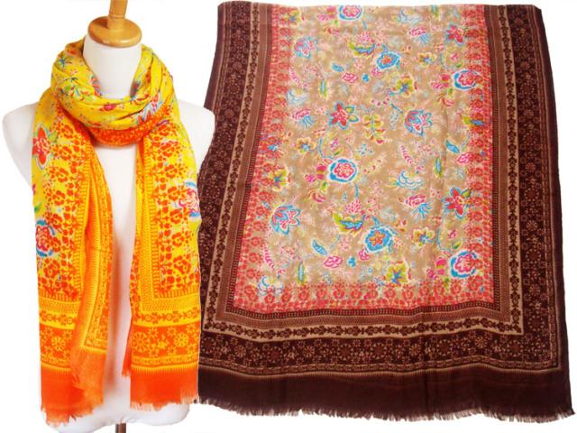 エスニックな花柄のストールスカーフ