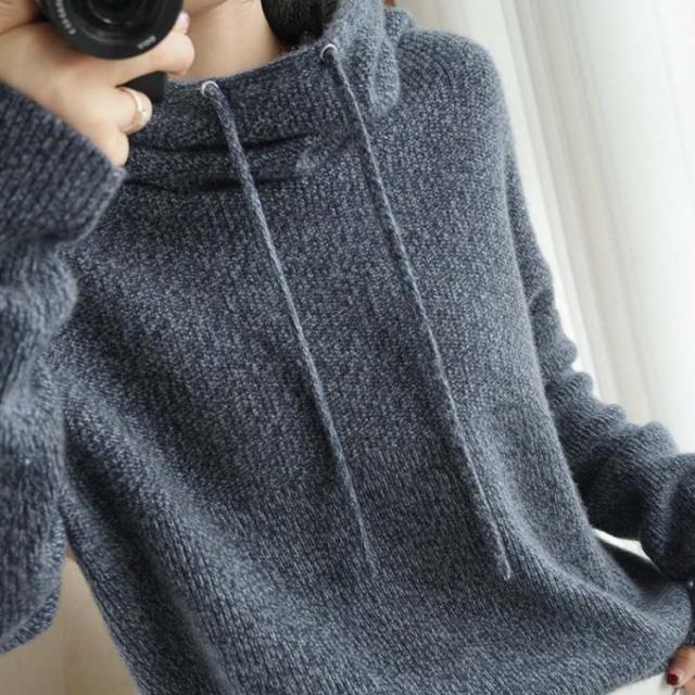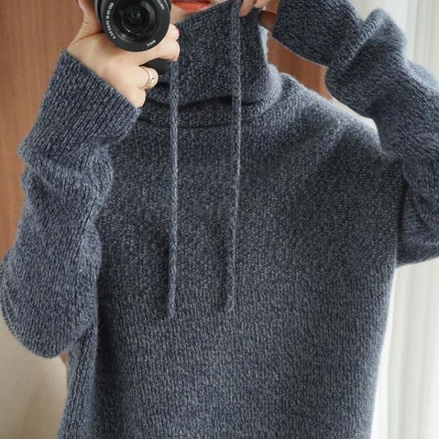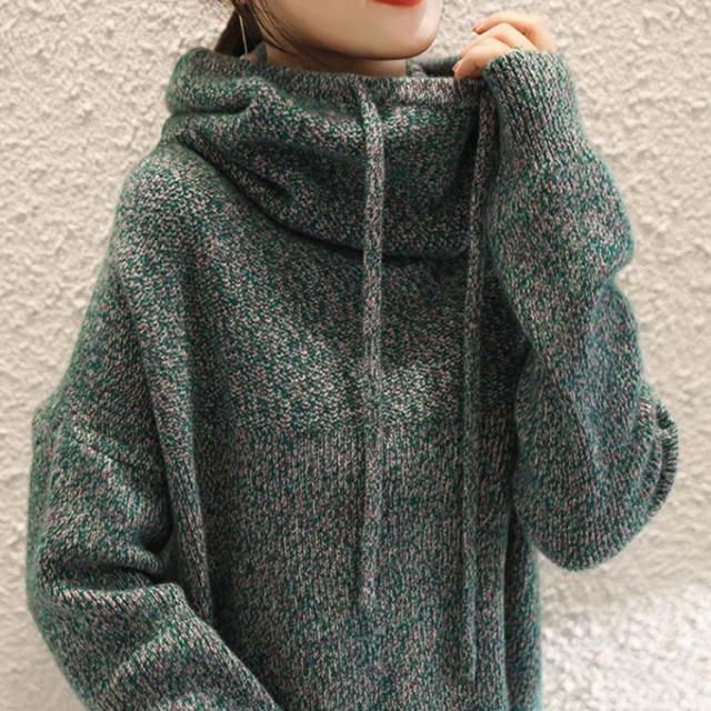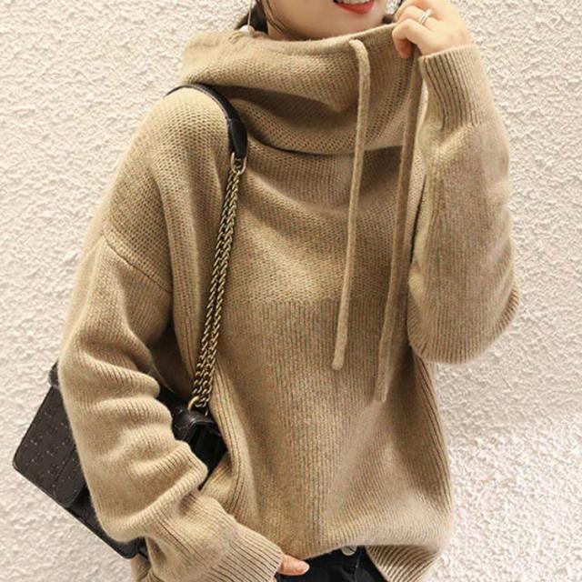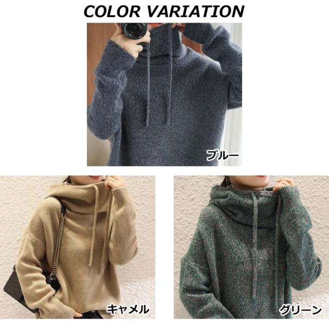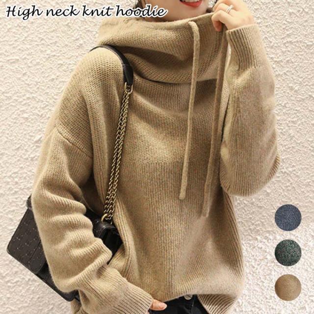パーカー レディース ニットパーカー マフラーいらず ボリュームあるハイネックパーカー プルオーバー ゆったり 大きいサイズ 首元 暖かい 冬