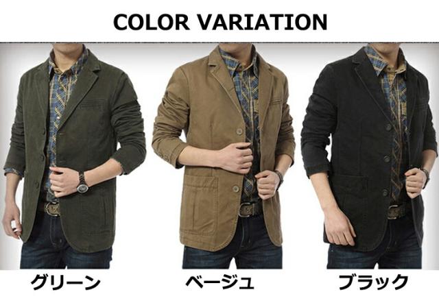 テーラードジャケット 綿100% ジャケット アウター メンズ ボタン付き 無地 長袖 カジュアル