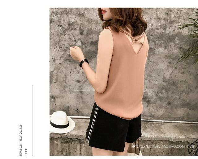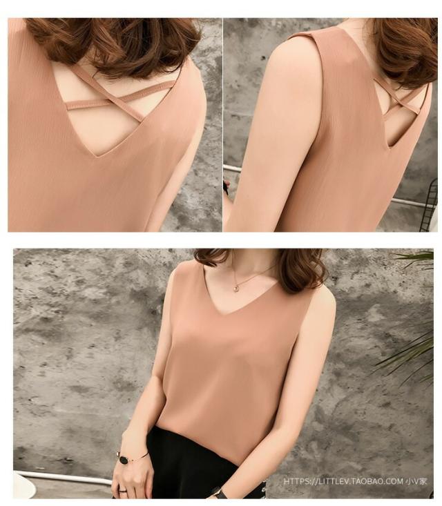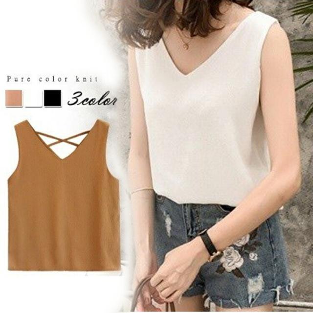 タンクトップ キャミソール レディース 春夏 ノースリーブ バッククロス 無地 Vネック シフォン ショート丈 セクシー 単品 大きいサイズ 全3色 M-4XL