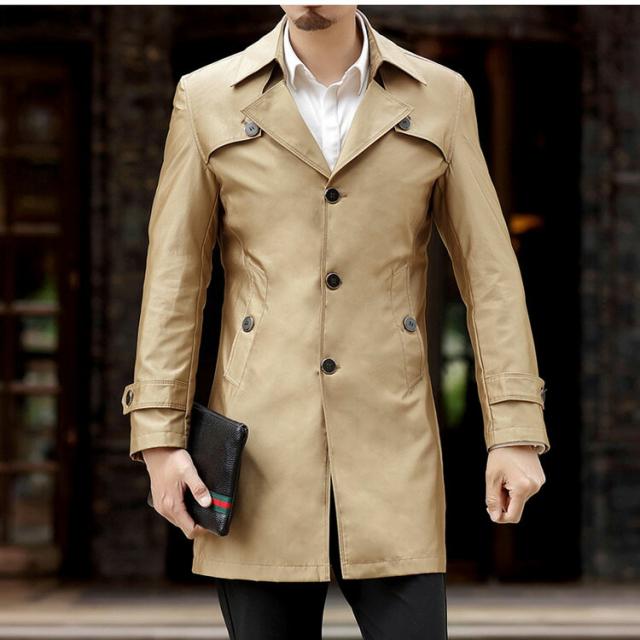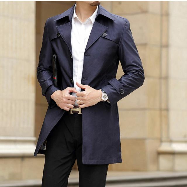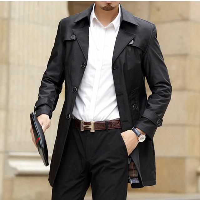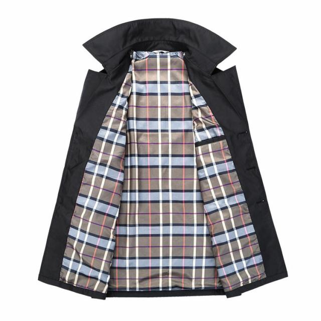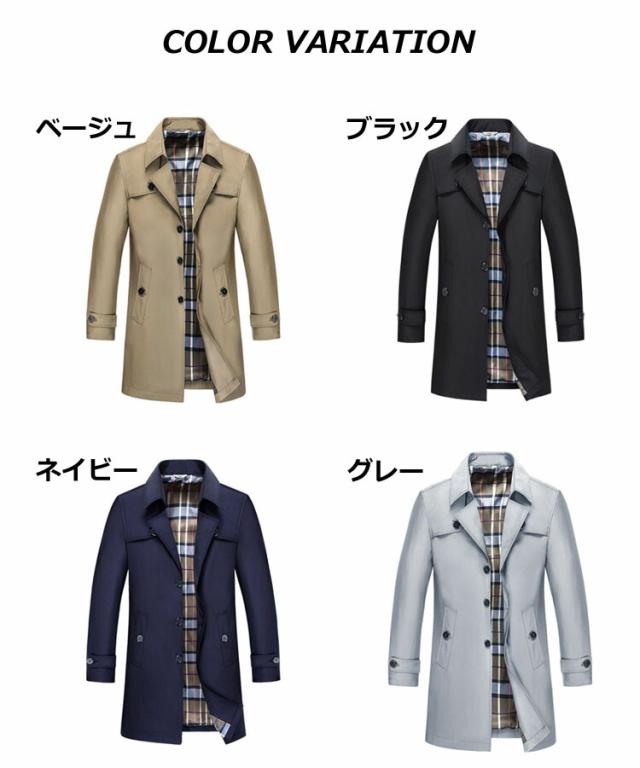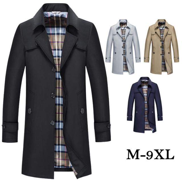 トレンチコート メンズ 秋冬 ロング丈 ミドル丈 ビジネス 内側チェック キレイめ 無地 大きいサイズ アウター 全4色 M-9XL